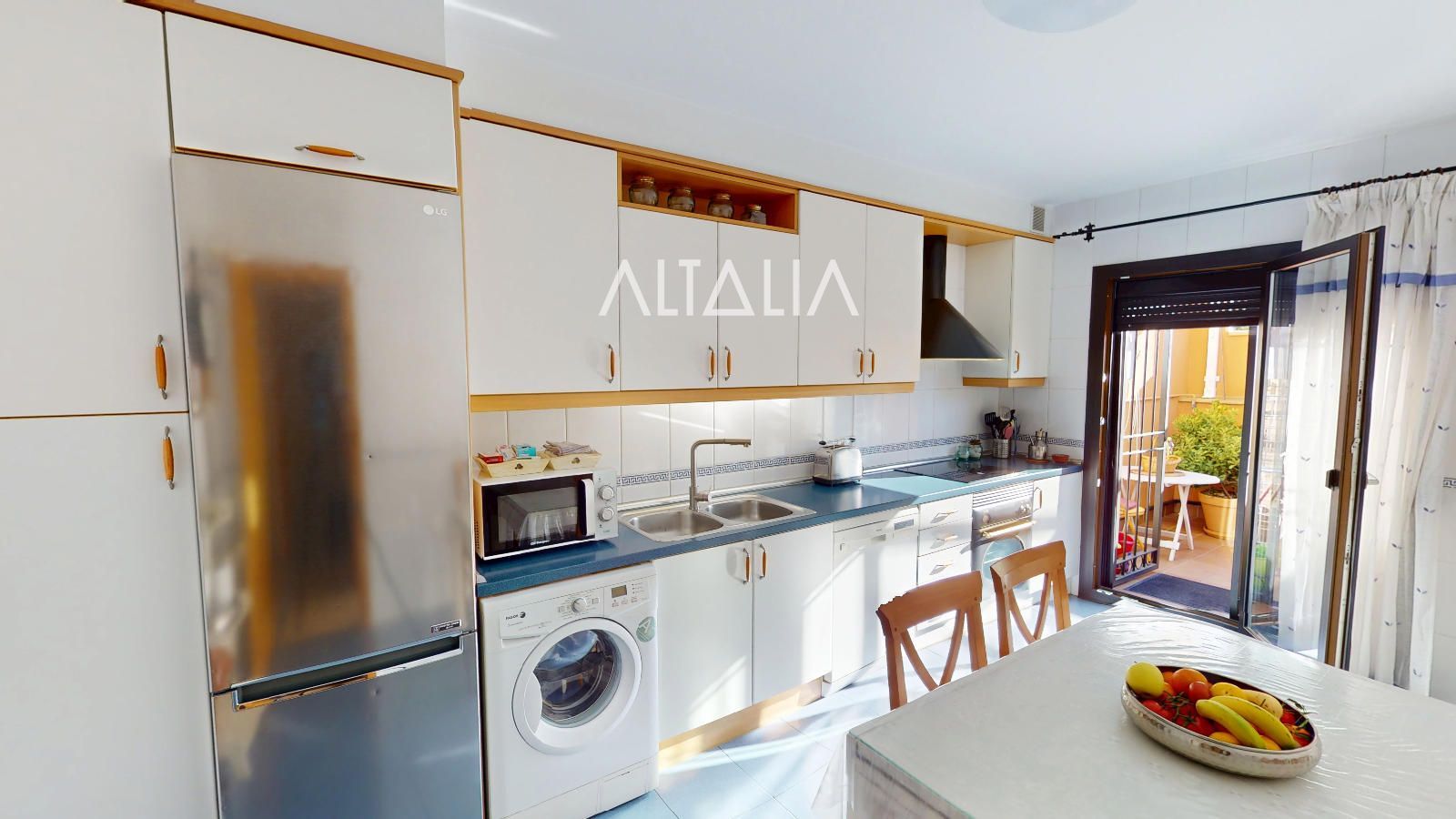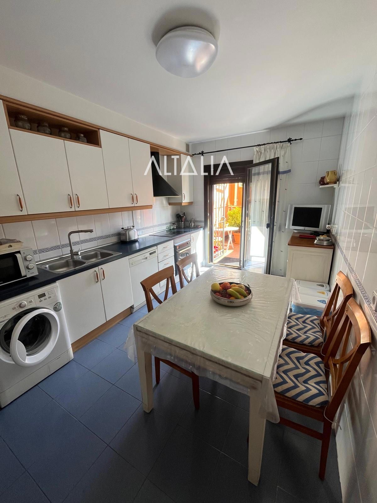 En planta baja nos encontramos un amplio salón a doble altura desde el que se accede al patio trasero de la vivienda, una cocina totalmente equipada que cuenta también con acceso al patio y un dormitorio con cuarto de baño en suite , que se encuentra además reformado con plato de ducha.